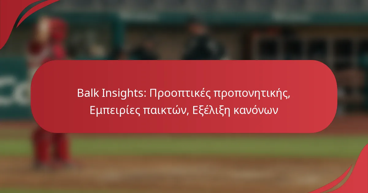 Ο κανόνας του balk στο μπέιζμπολ είναι ένα κρίσιμο στοιχείο που διαμορφώνει τόσο τις στρατηγικές προπονητών όσο και τις εμπειρίες των παικτών. Οι προπονητές τονίζουν τη σημασία του για τη διατήρηση της δικαιοσύνης, ενώ οι παίκτες συχνά παλεύουν με την συναισθηματική επίδραση των κλήσεων balk κατά τη διάρκεια των αγώνων. Καθώς ο κανόνας έχει εξελιχθεί με την πάροδο του χρόνου, στοχεύει στη βελτίωση της ακεραιότητας του παιχνιδιού και της απόλαυσης των θεατών, αντικατοπτρίζοντας τις συνεχείς αλλαγές στη δυναμική του αθλήματος.