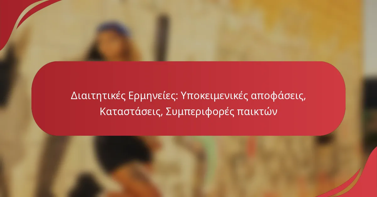 Οι υποκειμενικές αποφάσεις στη διαιτησία αναφέρονται σε αποφάσεις που λαμβάνονται από τους διαιτητές και βασίζονται στην προσωπική κρίση αντί για αυστηρούς κανόνες. Αυτές οι αποφάσεις μπορούν να επηρεάσουν σημαντικά τη ροή και το αποτέλεσμα ενός αγώνα, καθώς συχνά εξαρτώνται από την ερμηνεία των ενεργειών των παικτών και του περιβάλλοντος της κατάστασης από τον διαιτητή.